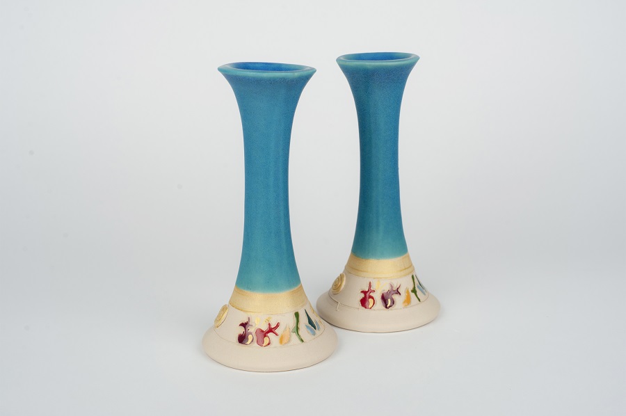 זוג פמוטים מקרמיקה בעבודת יד, עיטור שבעת המינים